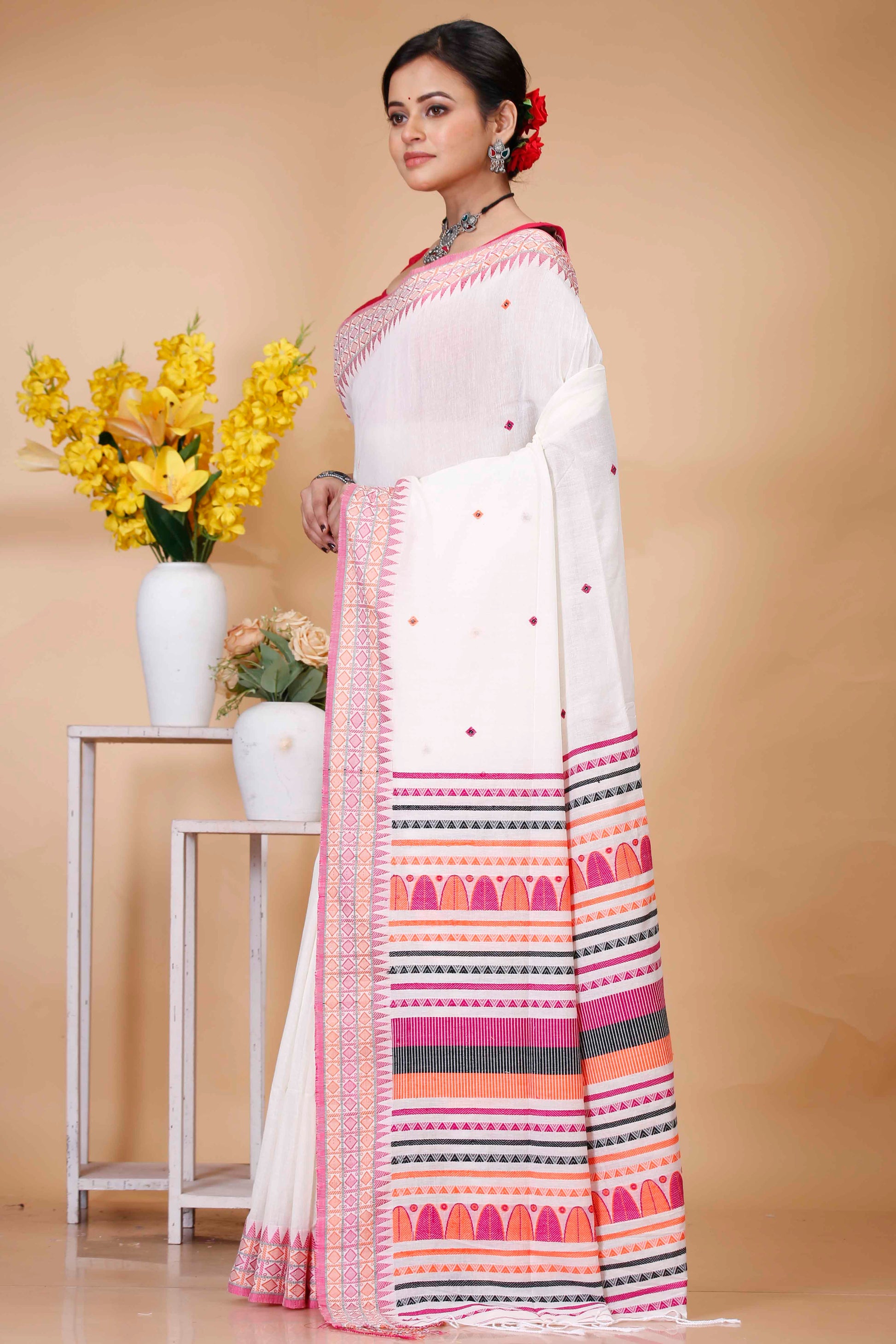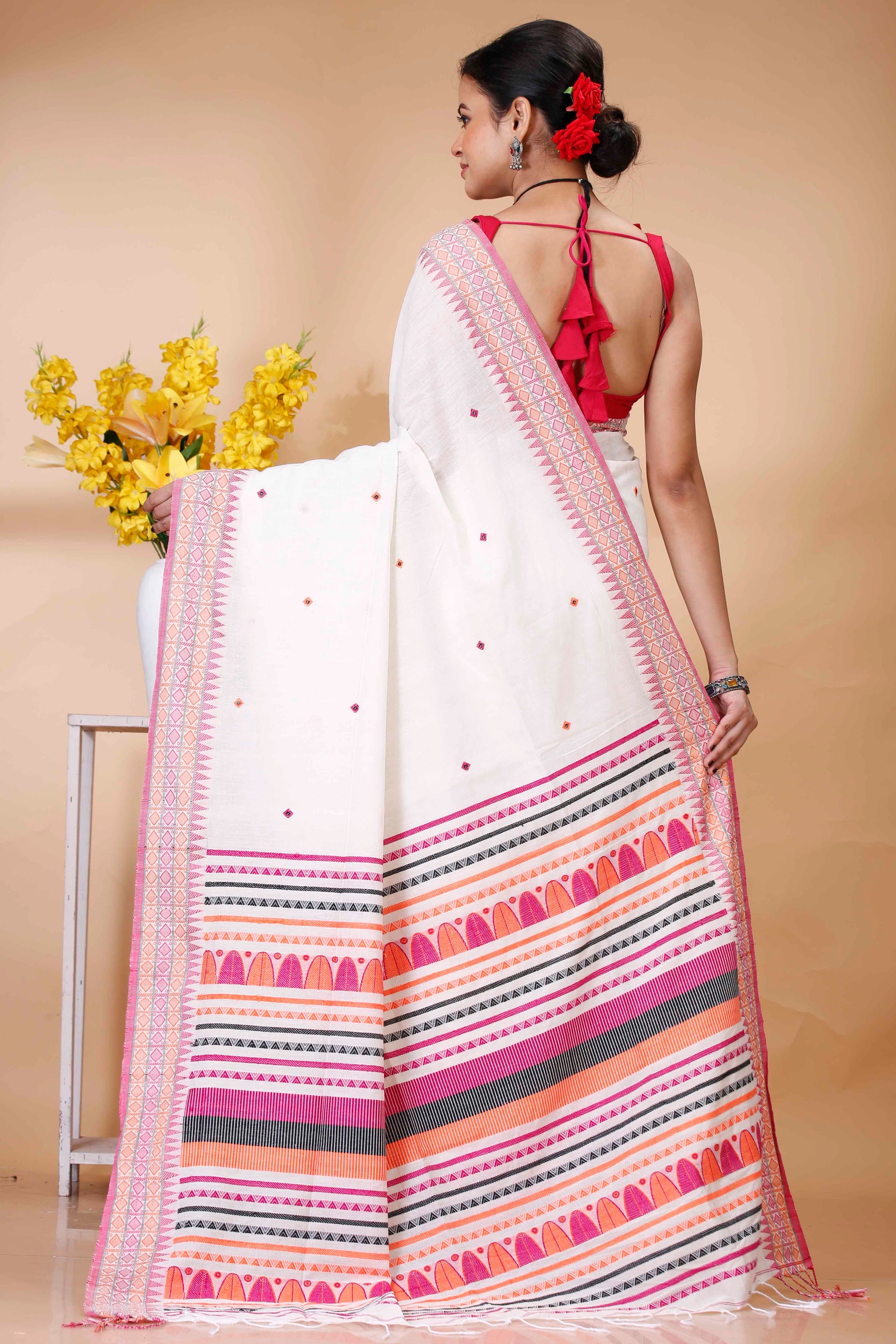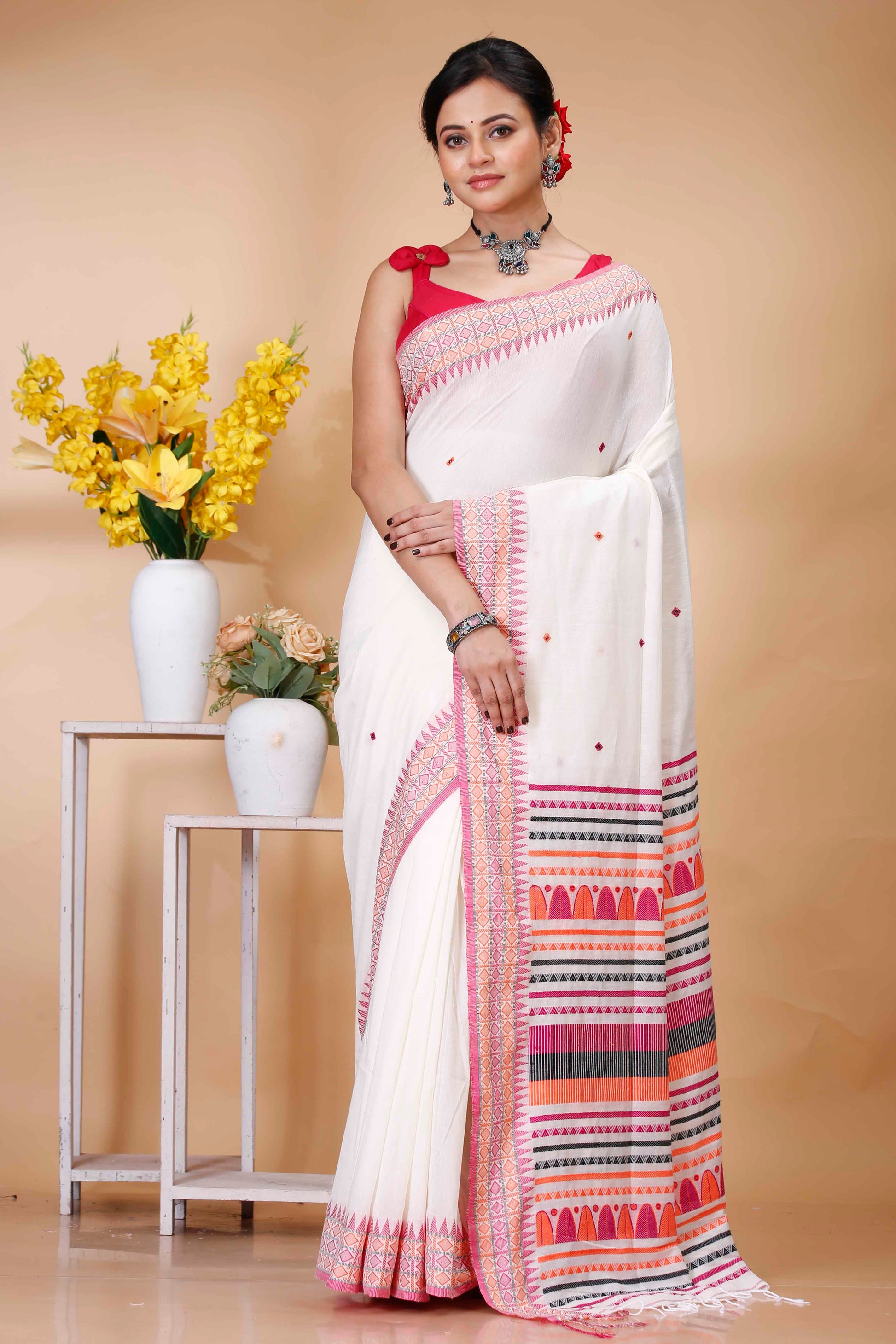 Tant sarees are light, airy, and perfect for everyday wear in warm weather. Our Printed Tant sarees add vibrant motifs and modern prints on the traditional Tant weave, offering a fresh, stylish twist while keeping the same comfort.