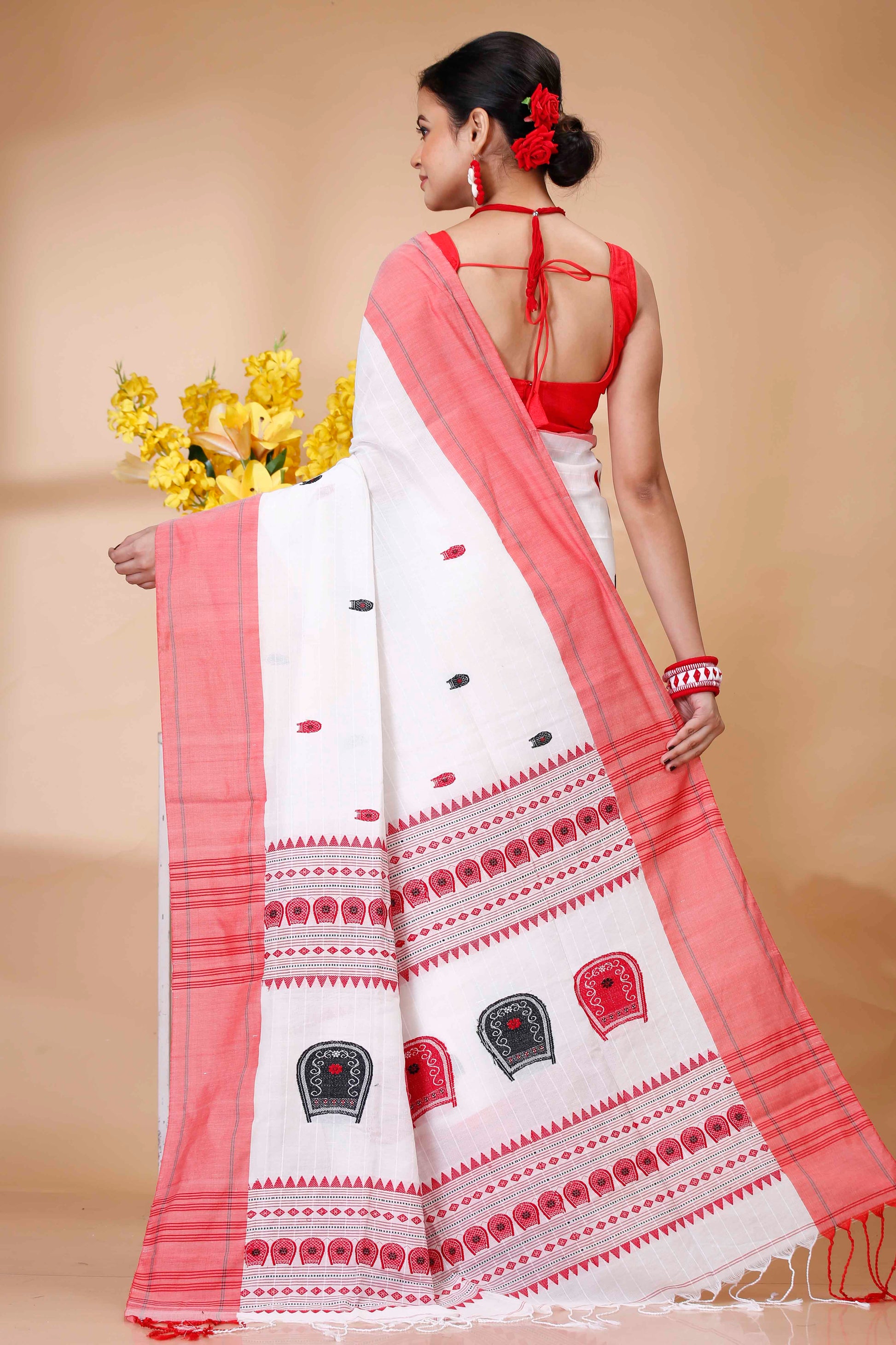 Tant sarees are light, airy, and perfect for everyday wear in warm weather. Our Printed Tant sarees add vibrant motifs and modern prints on the traditional Tant weave, offering a fresh, stylish twist while keeping the same comfort.