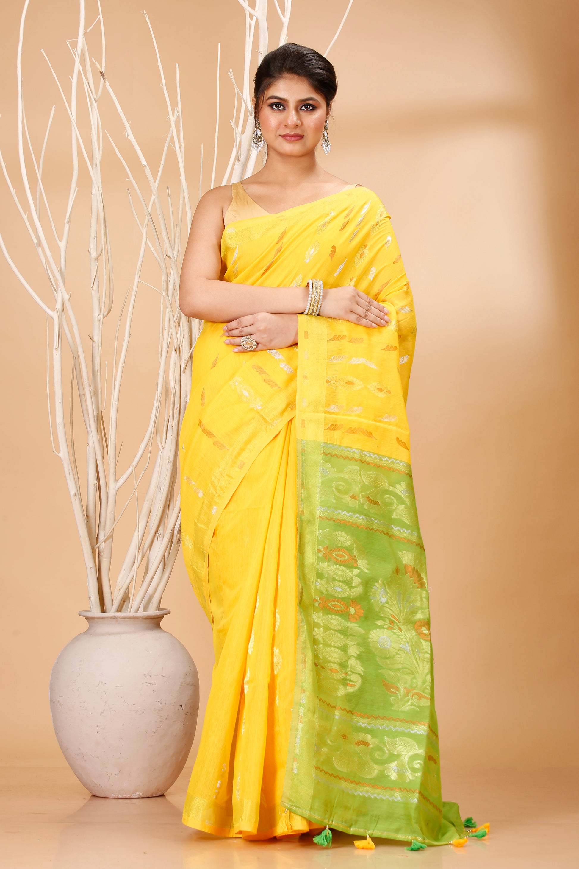 Tant sarees are light, airy, and perfect for everyday wear in warm weather. Our Printed Tant sarees add vibrant motifs and modern prints on the traditional Tant weave, offering a fresh, stylish twist while keeping the same comfort.