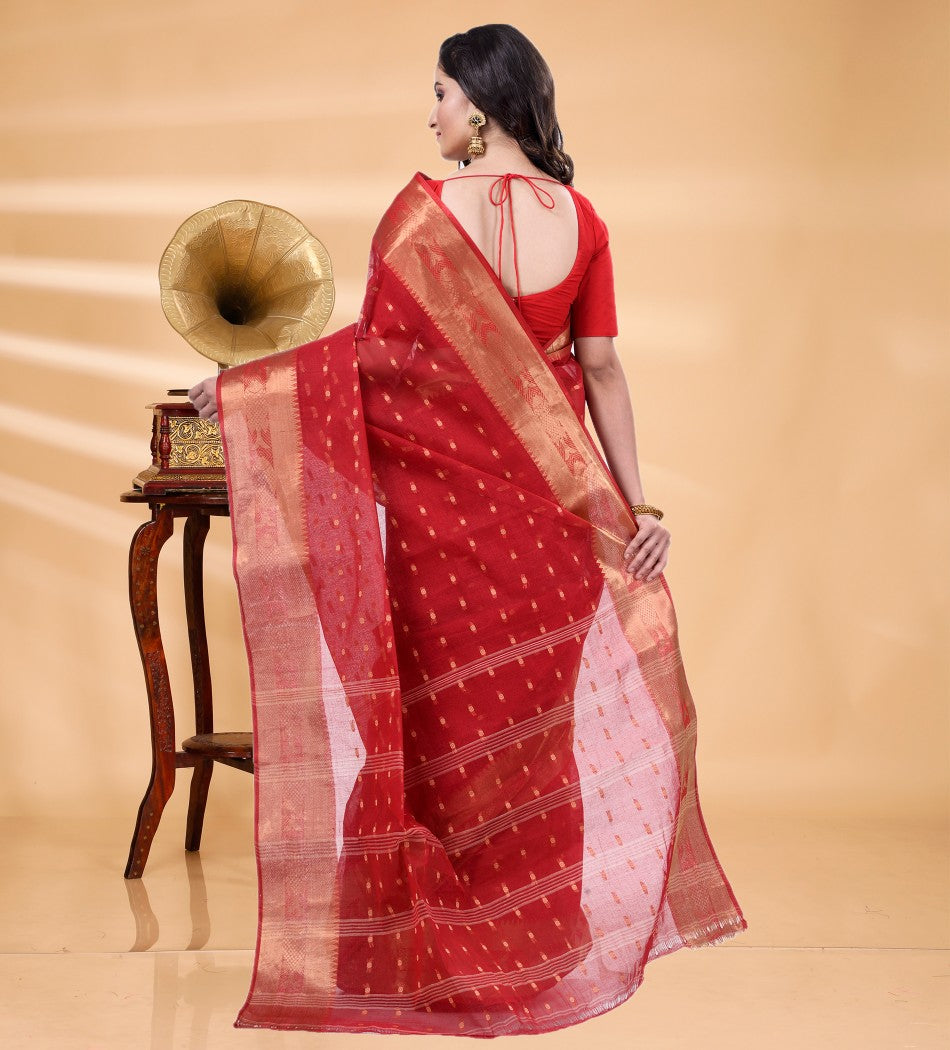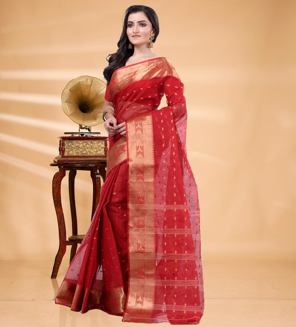 Tant sarees are light, airy, and perfect for everyday wear in warm weather. Our Printed Tant sarees add vibrant motifs and modern prints on the traditional Tant weave, offering a fresh, stylish twist while keeping the same comfort.