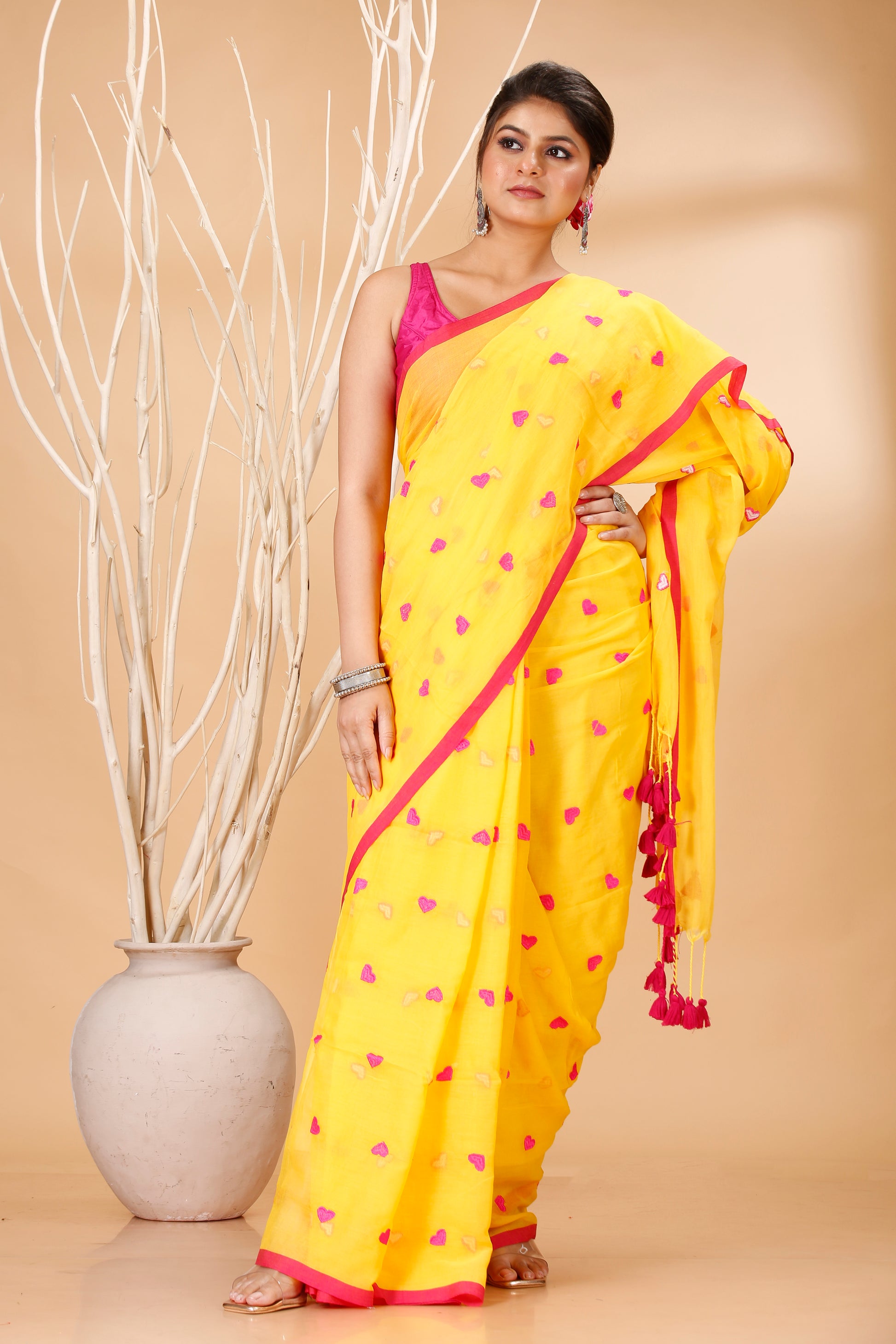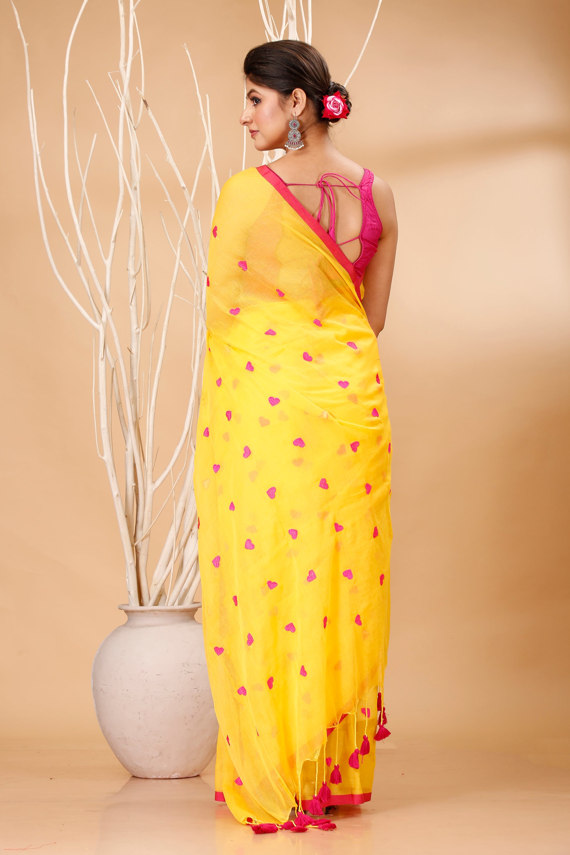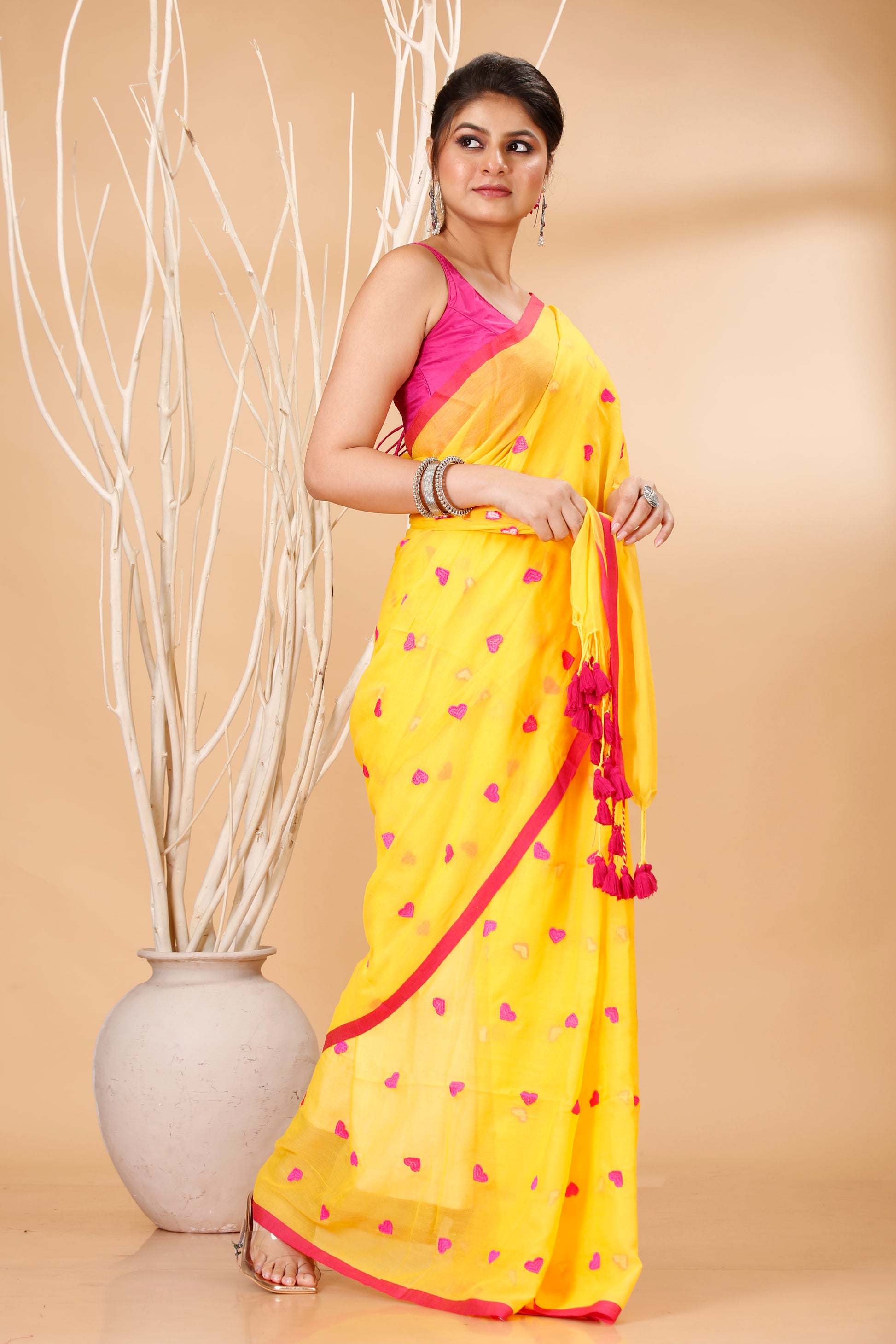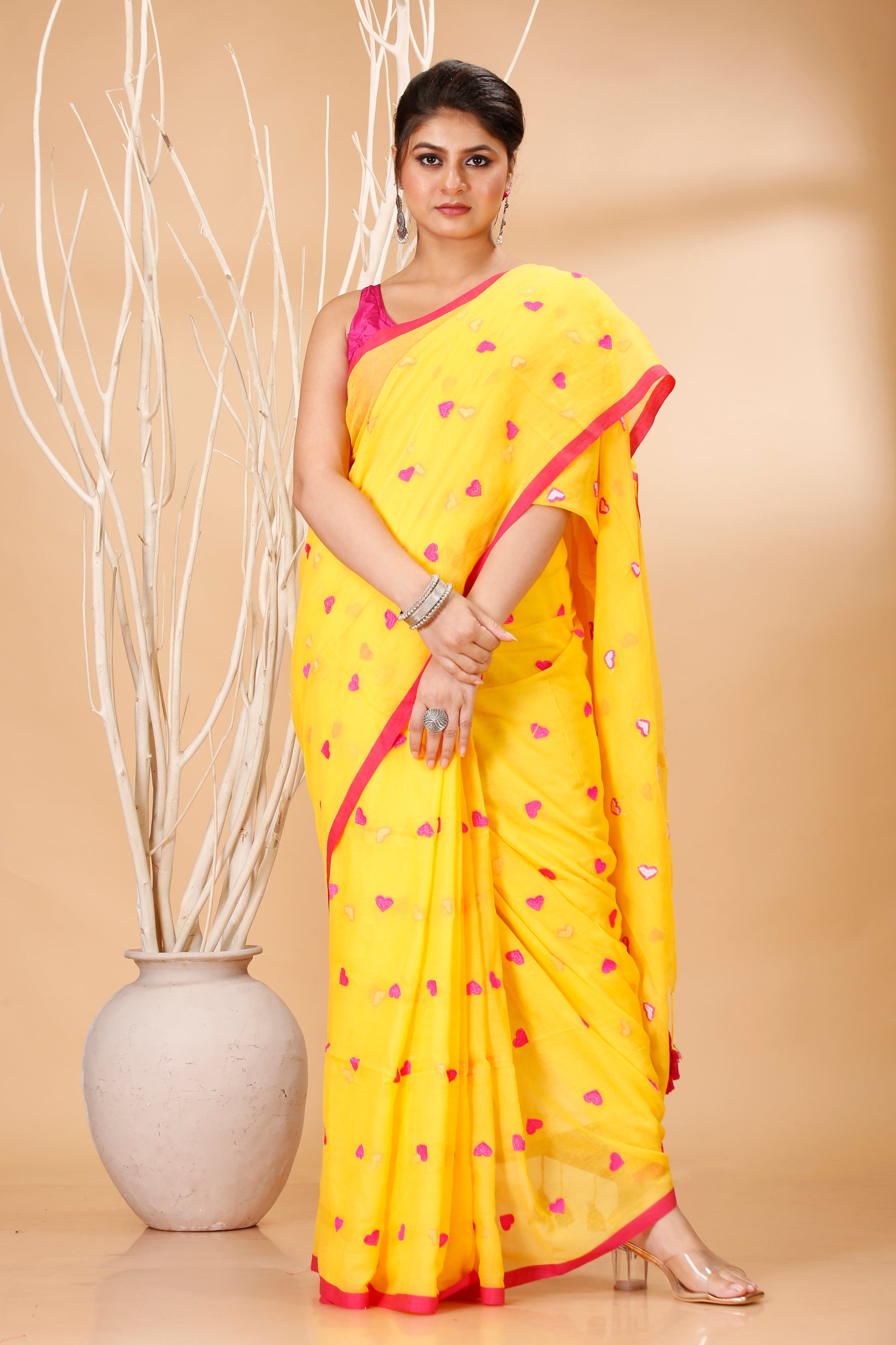Tant sarees are light, airy, and perfect for everyday wear in warm weather. Our Printed Tant sarees add vibrant motifs and modern prints on the traditional Tant weave, offering a fresh, stylish twist while keeping the same comfort.