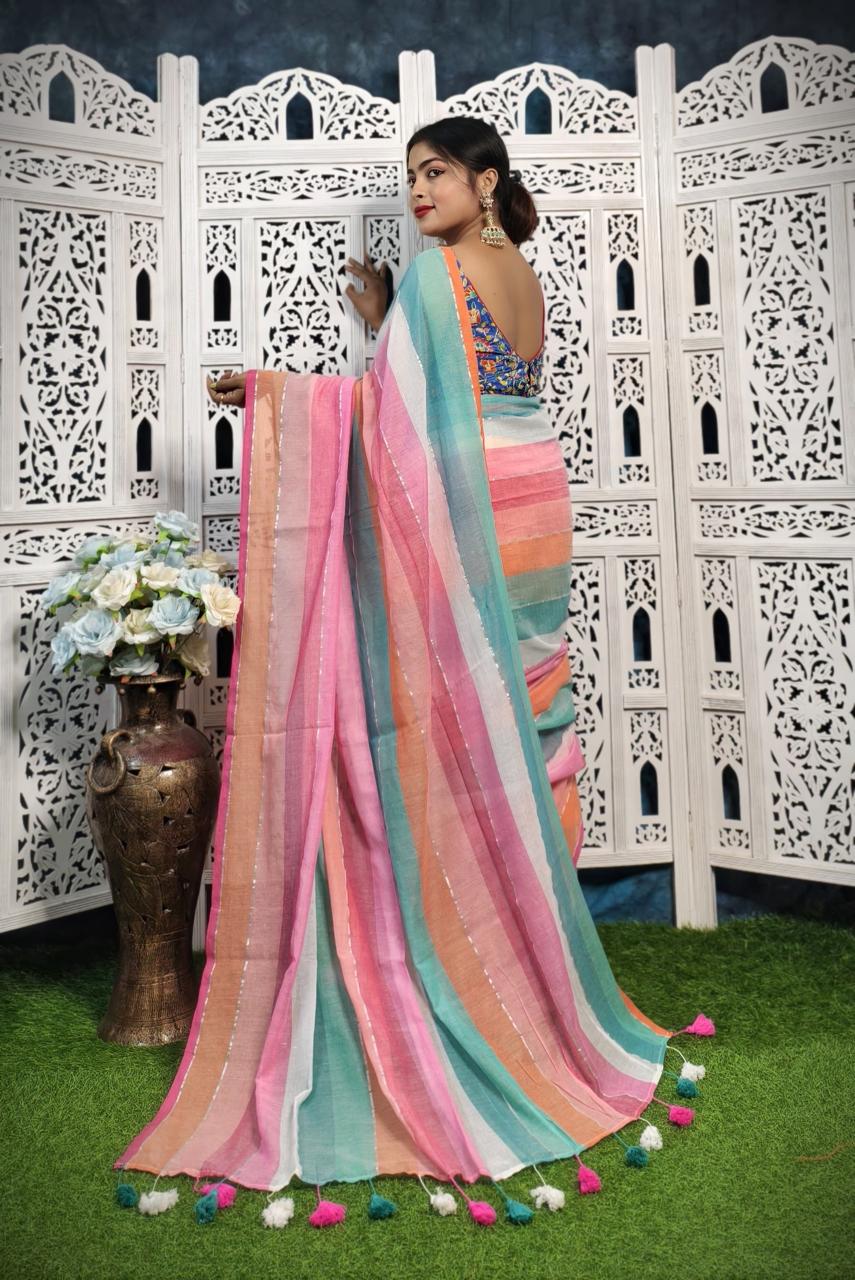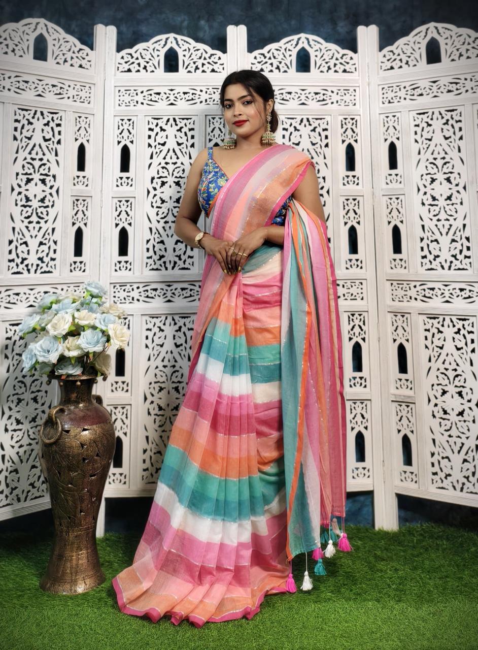 Tant sarees are light, airy, and perfect for everyday wear in warm weather. Our Printed Tant sarees add vibrant motifs and modern prints on the traditional Tant weave, offering a fresh, stylish twist while keeping the same comfort.