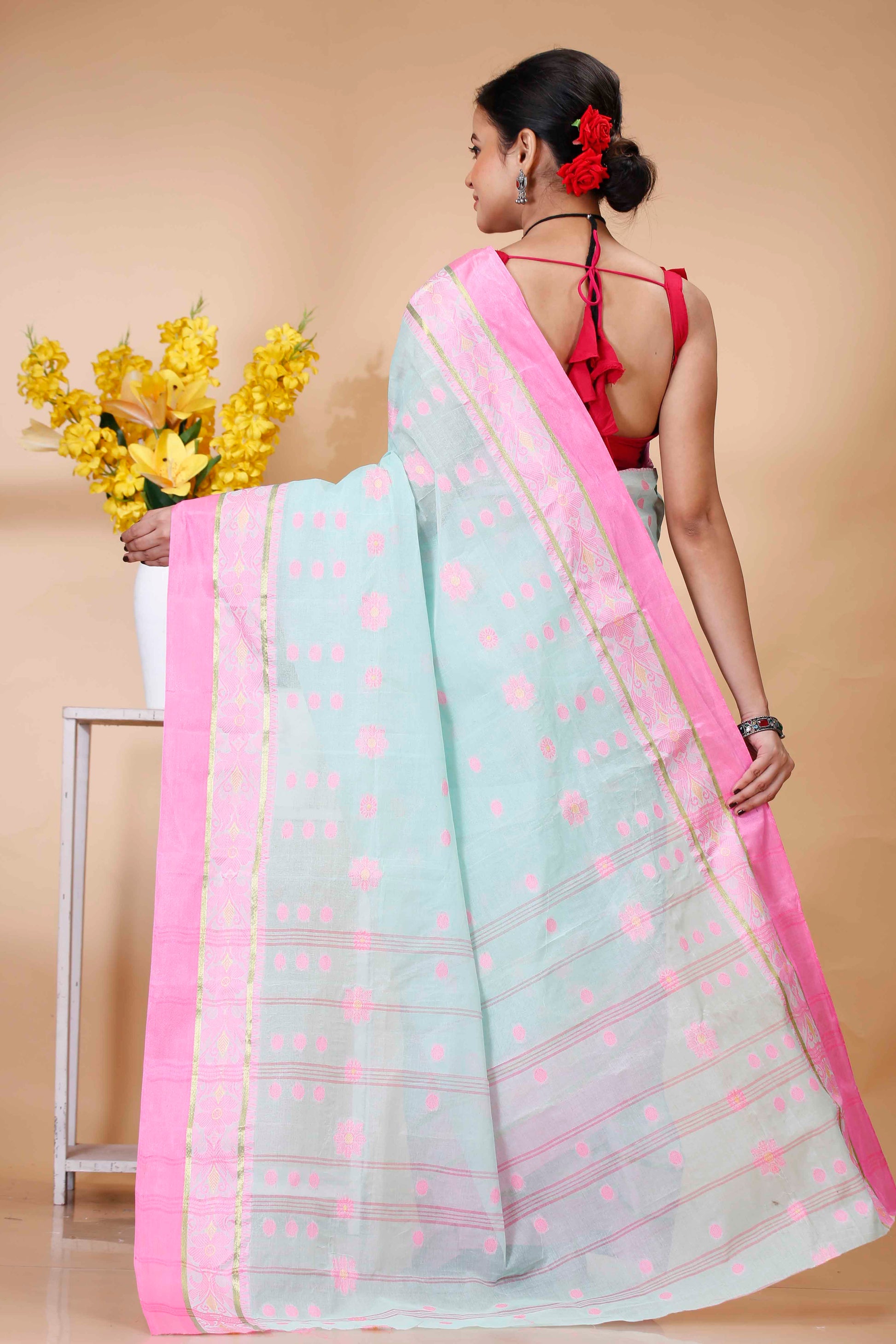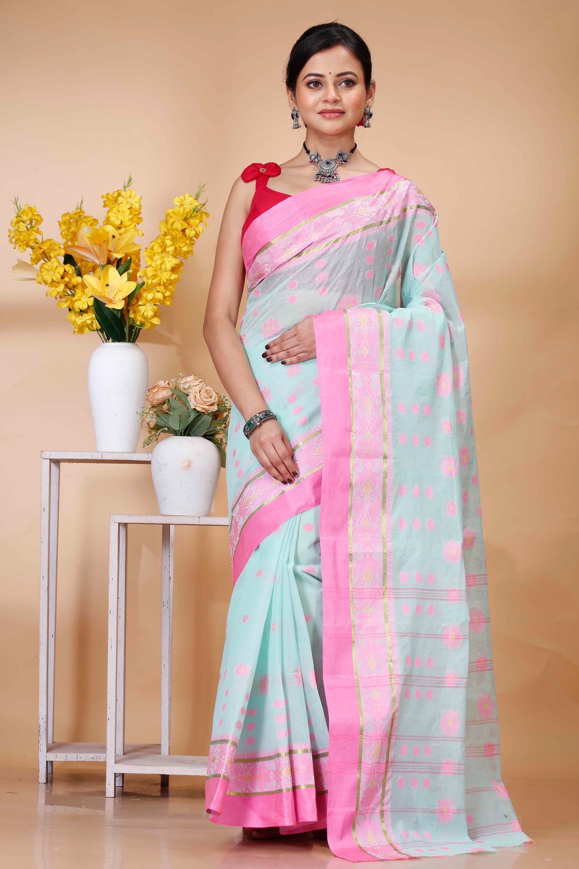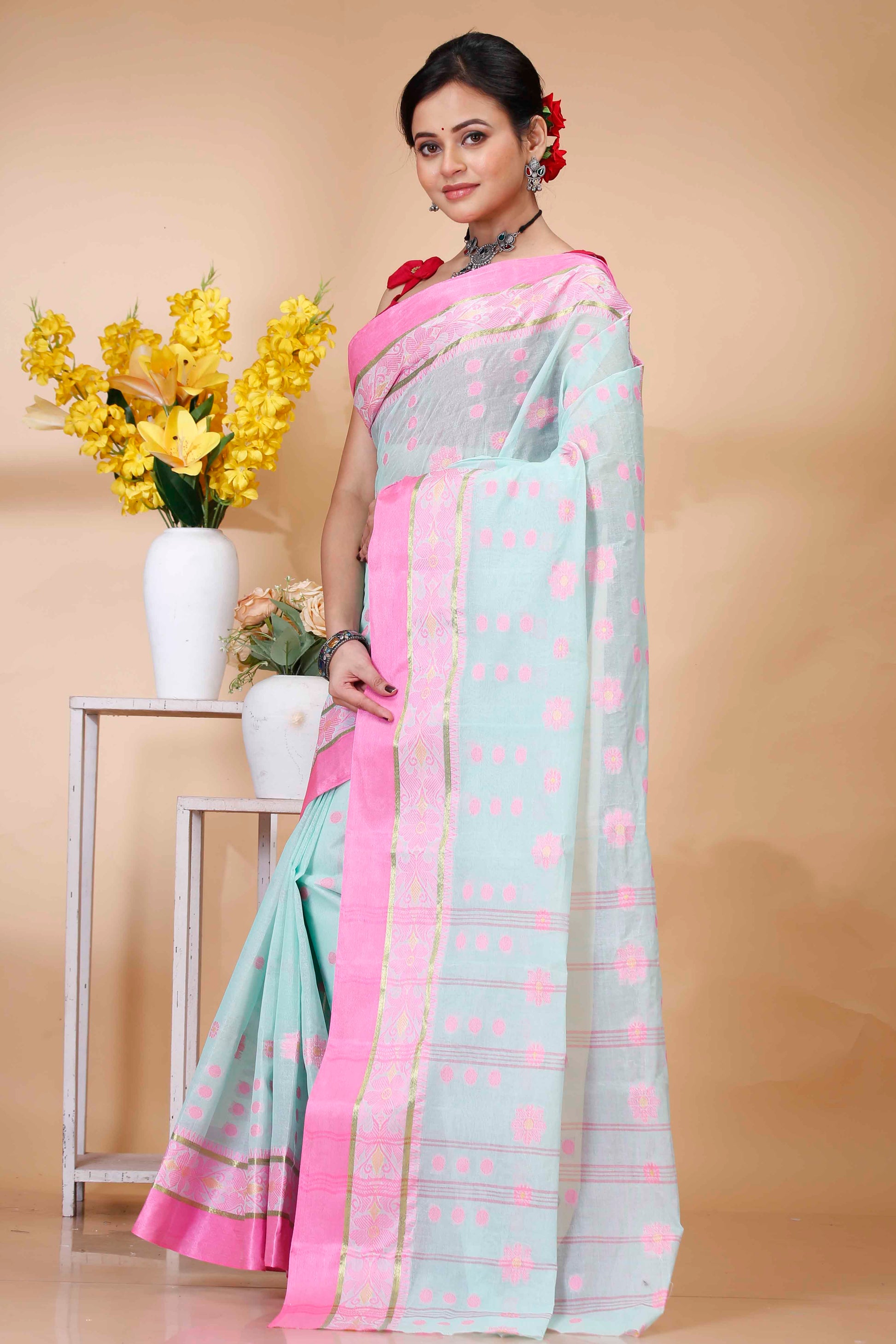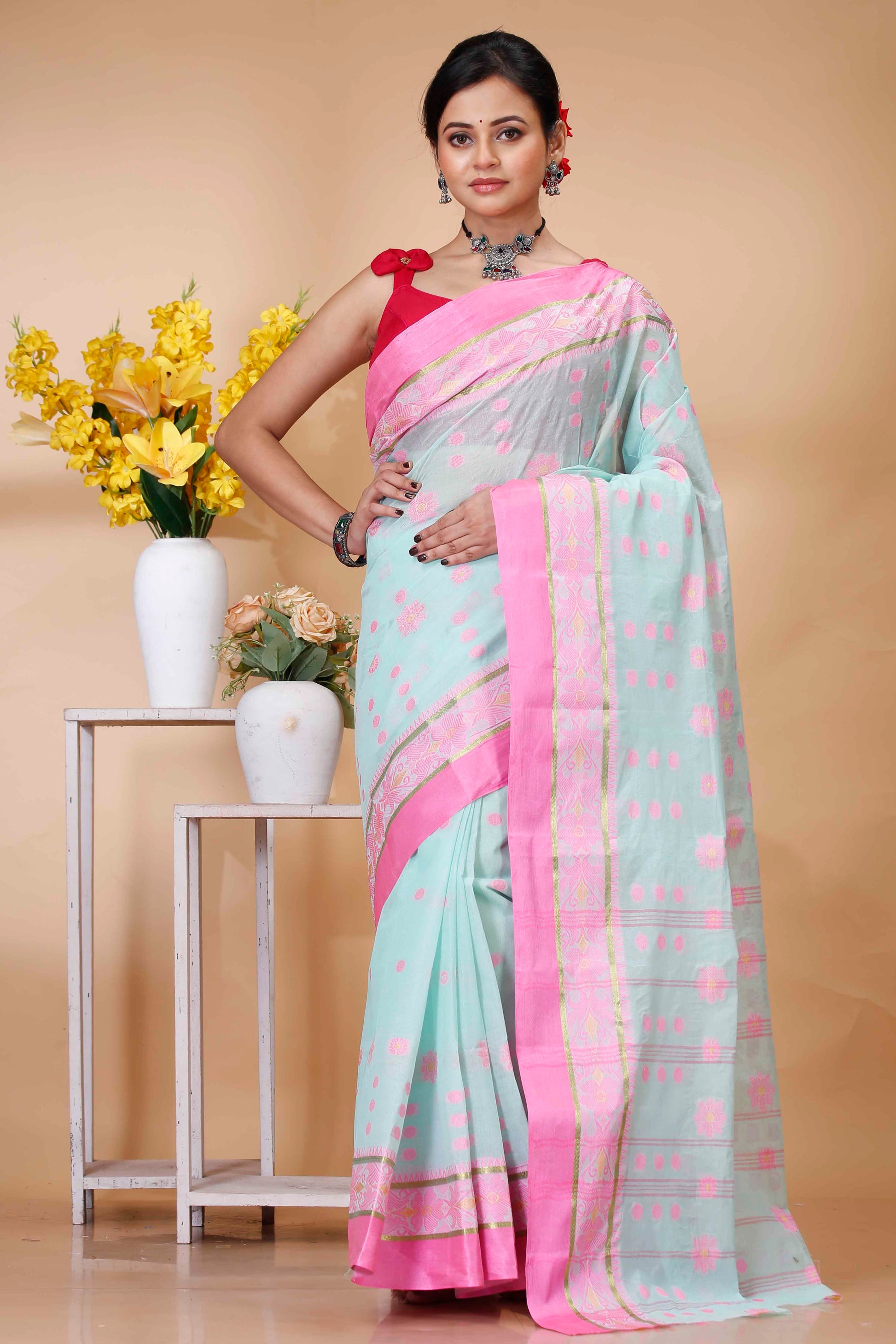 Tant sarees are light, airy, and perfect for everyday wear in warm weather. Our Printed Tant sarees add vibrant motifs and modern prints on the traditional Tant weave, offering a fresh, stylish twist while keeping the same comfort.